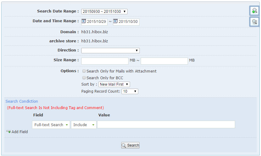 2. Real-time email search function. Allows you to search through archived messages and attachments (including compressed files).